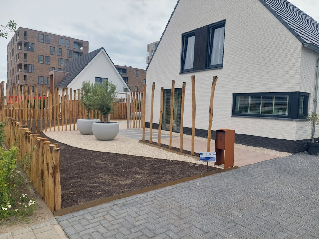 Ongeveer een half jaar voor de oplevering van onze nieuwbouwwoning heeft John een mooi tuinontwerp gemaakt, geheel naar onze wensen. Hier is ruim de tijd voor genomen, ook voor het uitzoeken en adviseren van de
